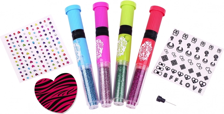 Lakpennen, glitters, steentjes, stickers