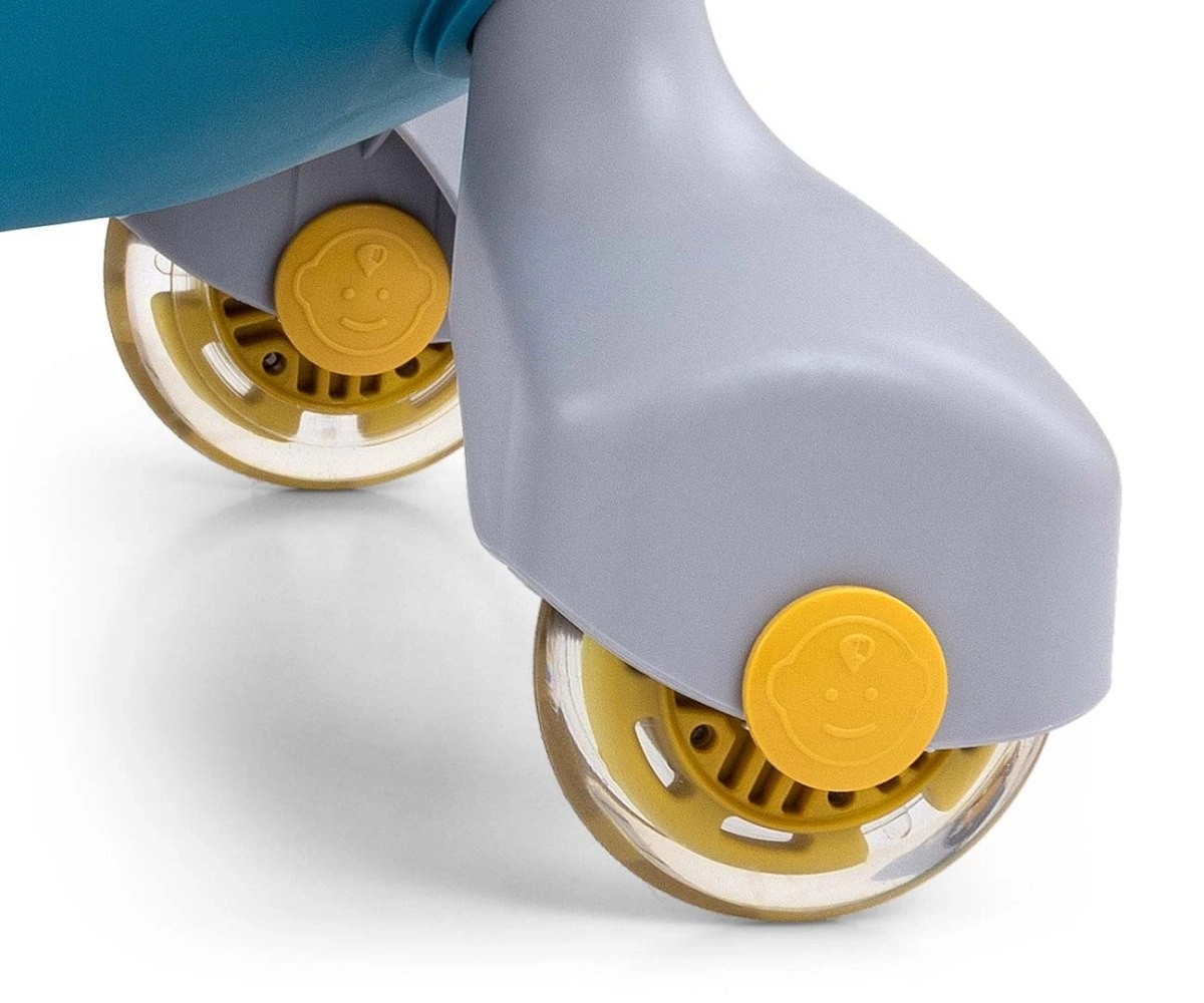De stabiliteit en veiligheid van de loopauto wordt gewaarborgd door de brede basis en het laag geplaatste zwaartepunt.