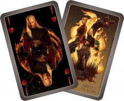 Duik in kaartspelavonturen met de Waddingtons House of the Dragon speelkaarten, die je meenemen naar de fascinerende wereld van gedurfde strategie en krachtige personages. Elke kaart vangt de energie van legendarische helden, draken en sleutelplekken uit de serie House of the Dragon.