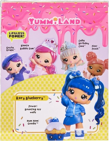Welkom in Yummiland, waar zes dappere Yummi-poppen hun stad beschermen met de superkracht van lipgloss. Met de pop Rory Blueberry en haar Lipgloss Pet maak je thuis eenvoudig je eigen lipgloss – meng gewoon de meegeleverde basis, kleur en geur en geniet van een uniek resultaat.