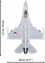 Met 425 COBI bouwblokken kun je dit iconische jachtvliegtuig bouwen met details op schaal 1:48. Het model bevat AIM-9 Sidewinder en AIM-120 AMRAM raketten die afneembaar en aanpasbaar zijn. De set bevat ook een pilotenfiguur met zuurstofmasker en helm, bedrukt met de Nederlandse luchtmacht symbolen.
