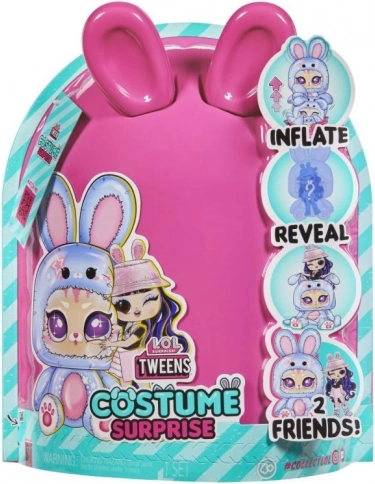 Met L.O.L. Surprise Tweens Kostuum Pracht komen er nieuwe en spannende avonturen. Begin met het openen van de rits aan de onderkant van de verpakking en verwijder de roze kap om een mysterieuze papieren envelop te onthullen. Kijk hoe de verpakking groter wordt en zich vult; zodra deze volledig is opgeblazen, scheur het papier open en ontdek het magische kostuum van een turquoise kitten!