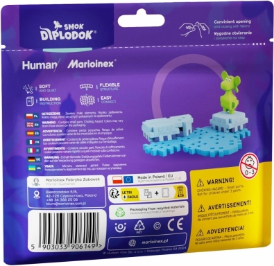 Spelen met Mini Waffle ontwikkelt fijne motoriek, creativiteit en ruimtelijk inzicht. De Diplodocus-figuur nodigt uit tot het vertellen van verhalen en stimuleert fantasierijk spel. De materialen zijn veilig en gecertificeerd, het product is in Europa vervaardigd en zowel de verpakkingen als de steentjes zijn gemaakt van recyclebare en hernieuwbare materialen.