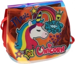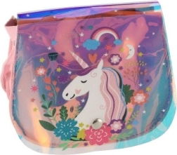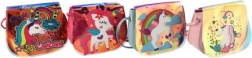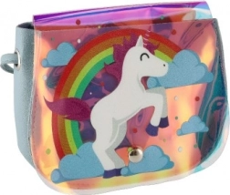 De tas is versierd met kalme motieven van eenhoorns en regenbogen, wat de kinderlijke fantasie en speelsheid stimuleert.