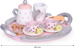 Dankzij de set kan een kind de rol van volwassene spelen en gasten uitnodigen voor een heerlijke thee en zoete versnaperingen. Naast plezier ontwikkelt uw kind verbeeldingskracht en fijne motoriek en leert het ook thee bereiden en tafelmanieren kennen.