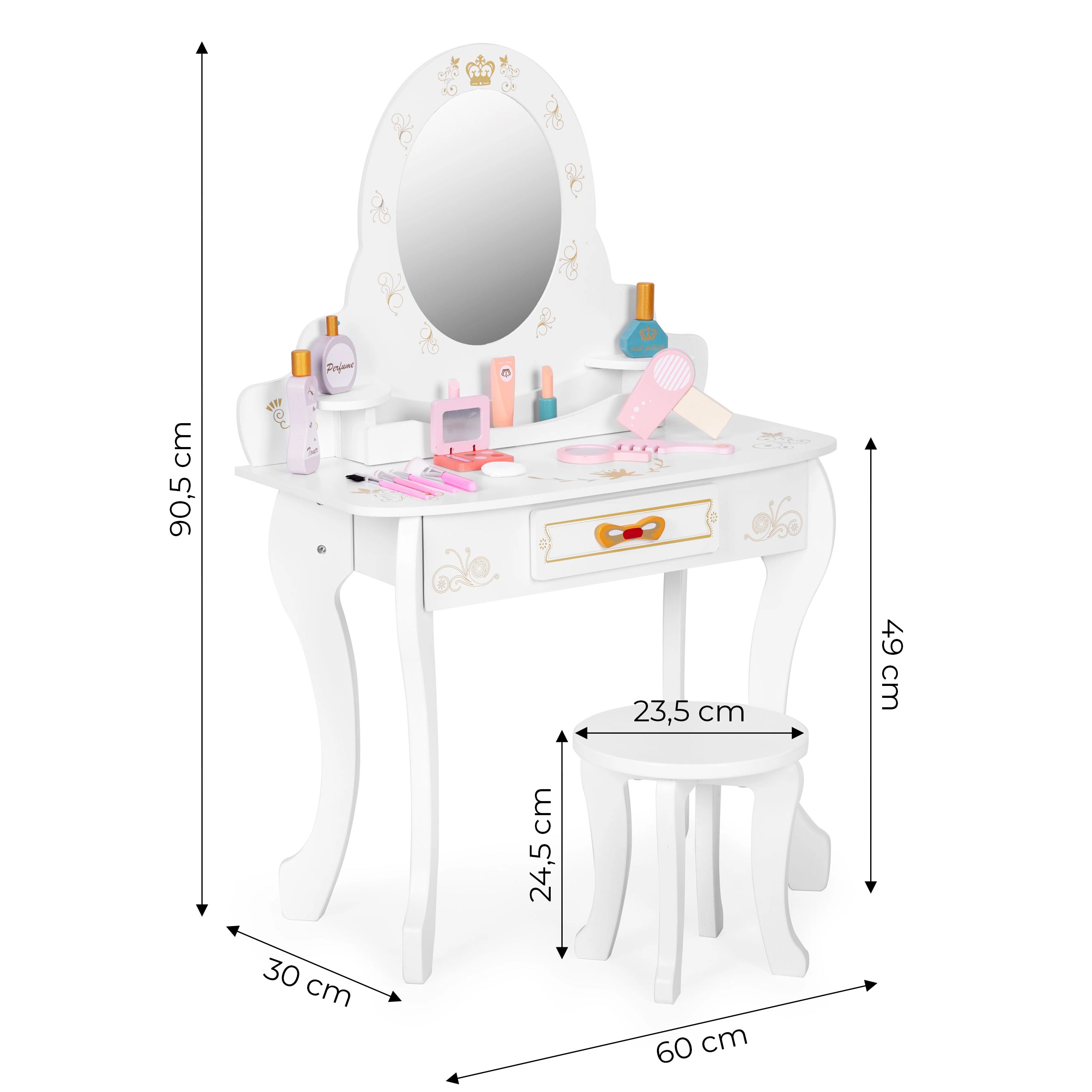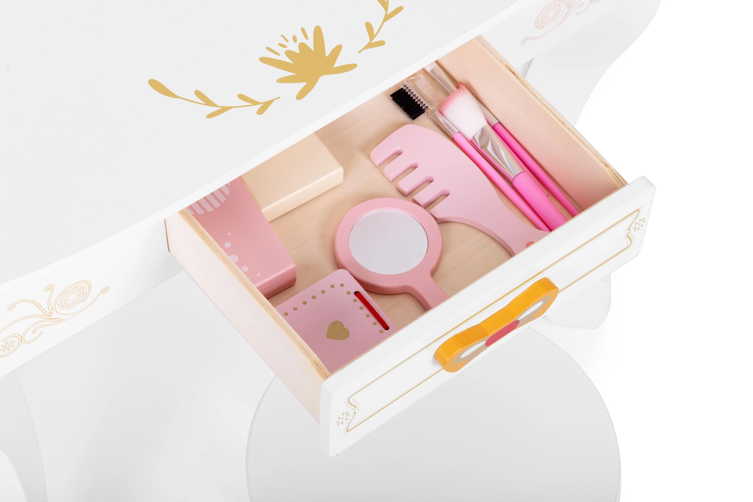 De kaptafel is uitgerust met speelaccessoires, zoals: