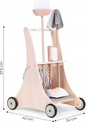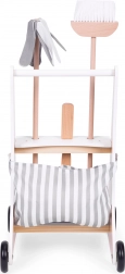 Stimuleer fantasie en zelfstandigheid met deze houten schoonmaakset waarmee kinderen graag volwassenen nadoen. De kar op wieltjes maakt verplaatsen door de kamer eenvoudig en houdt alle accessoires overzichtelijk op hun plek. Dankzij de hoogwaardige afwerking van hout en textiel is de set duurzaam, veilig en prettig om aan te raken.