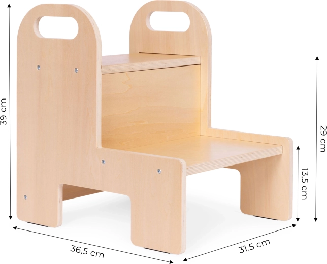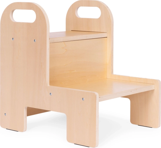 Het sterke 12 mm multiplex, de afgeronde randen en twee ruime treden geven kinderen vertrouwen bij dagelijks gebruik in zowel de keuken als de badkamer.