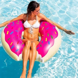 Deze opblaasbare donut-zwemband maakt elk moment aan het water speels en leuk. Het realistische roze glazuur met gekleurde sprinkels trekt meteen de aandacht, terwijl het duurzame materiaal zorgt voor veilig en comfortabel dobberen en relaxen.
