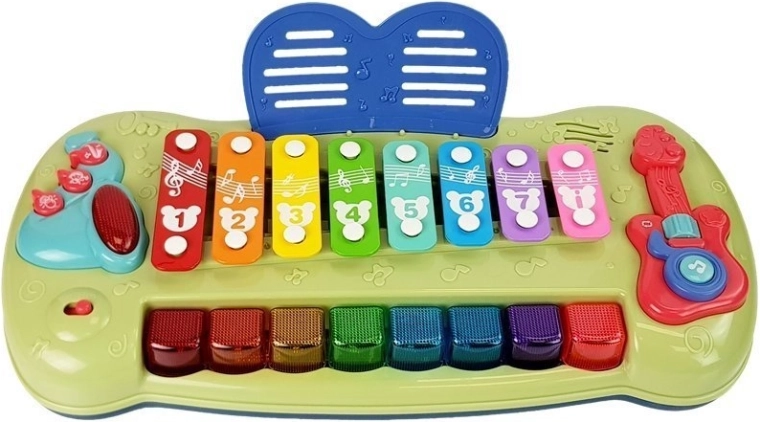 Geef uw kind de kans om de basis van muziek te leren met dit leuke kindertoetsenbord en xylofoon. Het kleurrijke ontwerp en de verschillende toetsenformaten stimuleren het zicht en zorgen voor plezier. De xylofoon biedt acht tonen die met stokken kunnen worden bespeeld of door toetsen te drukken zoals bij een piano, wat aangename geluiden produceert die het gehoor stimuleren.