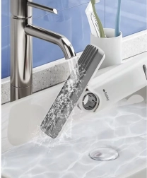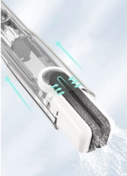 Opzetstukken kunnen eenvoudig worden gespoeld door meerdere keren te spoelen en water te persen met één vinger. De mop is ook uitgerust met een ergonomische handgreep die het schoonmaken vergemakkelijkt en uw hand niet belast.