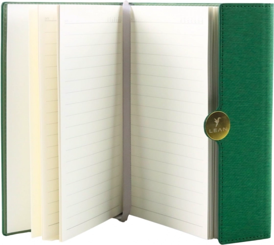 Harde, duurzame kaften in het groen beschermen de inhoud en geven het notitieboek een professionele uitstraling voor dagelijks gebruik.