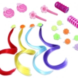 - Complete set accessoires – kam, “krultang”, speldjes en gekleurde lokken.