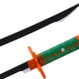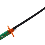 Dit samuraizwaard voor kinderen bootst trouw de legendarische nichirin-stijl na – met een zwart lemmet en een oranje-groene handgreep met geometrisch patroon voor een stevige en comfortabele grip. Het veilige kunststof lemmet met een lengte van ca. 40 cm en een handgreep van ca. 15 cm ondersteunt veilig en creatief spel.