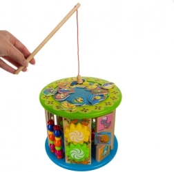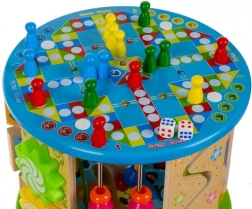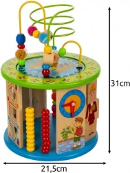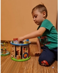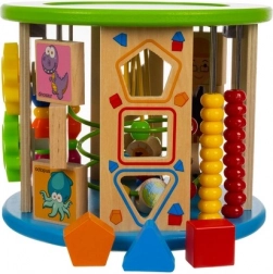 Deze creatieve kubus is ontworpen voor kleine ontdekkers en biedt 11 verschillende activiteiten op alle zijden, inclusief de bovenkant. Kinderen oefenen het herkennen van kleuren en vormen, leren tellen met het telraam, begrijpen het principe van de klok en verbeteren de oog-handcoördinatie dankzij het kralendoolhof en andere interactieve elementen.