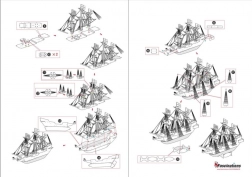 Het in elkaar zetten gebeurt zonder lijm – onderdelen worden verbonden via vergrendelingen met haakjes die je ombuigt met een kleine tang. Het voltooide model van het schip GOLDEN HIND komt prachtig tot zijn recht als stijlvolle decoratie op een plank, bureau of in een vitrinekast.