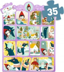 Deze fantastische puzzel vertelt het verhaal van Roodkapje, dat wordt verteld in de vorm van een strip. Geweldige pret voor gezinnen en kinderen, die zowel genieten van het puzzelen als van het lezen van het sprookje. De verpakking bevat niet alleen 35 puzzelstukjes, maar ook een poster met het verhaal en 3 kartonnen figuren, die uw creatieve spel tot leven brengen.