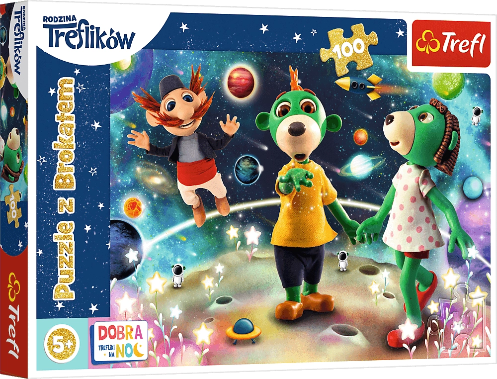 Ontdek de magie van de Treflíci met deze prachtige puzzelset. De glitters geven de stukjes een unieke uitstraling en de gelegde puzzel wordt een mooie decoratie voor de kinderkamer.