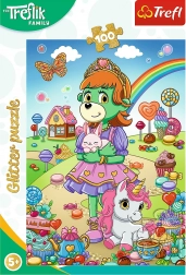 Puzzel met glitters Familie Treflik biedt 100 briljante stukjes die, eenmaal samengesteld, een prachtig beeld creëren. Bedekt met fijne gouden glitter zal het elk klein fan van dit geliefde sprookje verheugen.