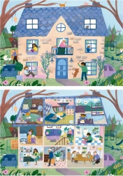 Dit duo van hoogwaardige EDUCA-puzzels met een huis van buiten en van binnen zal jonge puzzelaars verrukken met heldere kleuren en talrijke details. Elke doos bevat twee afzonderlijke legpuzzels van 100 stukjes die zowel vermaken als vaardigheden ontwikkelen.