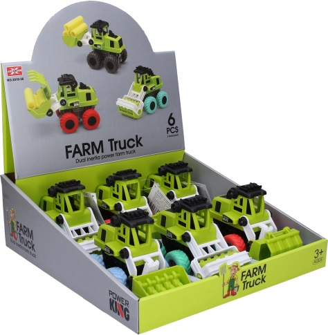 Kindercombine 14 cm met vliegwiel op alle vier de wielen. 3 varianten, realistische uitvoering, displaydoos 6 stuks. Geweldig plezier voor kleine boeren.