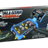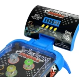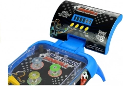 Het ontwerp van het flipperspeelgoed ziet eruit als een verkleinde versie van een klassieke speelautomaat. Het speelvlak is verbonden met twee poten en een scoreteller, waarvan de positie de speler naar wens kan aanpassen. Dankzij de poten staat het bord in een hoek die zorgt voor geweldig speelplezier en het wegslingeren van de kogel naar boven. Een groot pluspunt van het speelgoed is het design, versierd met voetbalmotieven. De blauwe behuizing van het speelbord is gecombineerd met een donkere achtergrond, die er na het inschakelen van de gekleurde lampjes geweldig uitziet. Na het plaatsen van batterijen druk je op de ON/OFF-knop en vervolgens op de START-knop ernaast. Wil je geluiden toevoegen aan de spelspanning, druk dan simpelweg op de muziekknop. De laatste knop is gemarkeerd als TOP SCORE; na het indrukken wordt de hoogste behaalde score weergegeven. Wij geloven dat deze functie je kan motiveren om in de volgende sessie nog beter je best te doen. Indien nodig kan deze teller worden gereset en kan het spel opnieuw worden gestart.