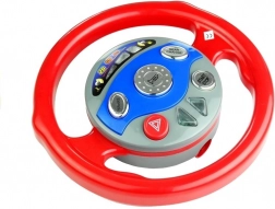Het stuur is uitgerust met een spiegel die het speeltje realistischer maakt. Het bevat verschillende interactieve functies, zoals knoppen voor START/STOP, snelheidsverandering, rem, claxon en knipperende lichten. Deze functies zullen kinderen gemakkelijk vermaken tijdens lange ritten.