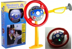 Geweldige simulator stuur voor kinderen met eenvoudige montage op het achterraam of met de mogelijkheid voor bevestiging met een zuignap. Het kind kan het stuur in de handen houden, op een standaard tussen de benen plaatsen, of aan een raam bevestigen.