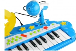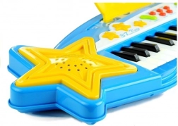 Ontdek de vreugde van muziek met het kinderkeyboard met 37 toetsen, dat speels design combineert met praktische functies. De kleurrijke uitvoering met luidspreker in stervorm, ingebouwde melodieën en een aan te sluiten microfoon motiveert kinderen om te creëren, te zingen en hun eerste muzikale stappen te zetten. Dankzij de MP3-ingang kunnen ze ook hun favoriete liedjes spelen en meezingen.