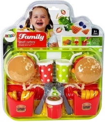 Onze keukenset bevat alles wat je kind nodig heeft om de honger te stillen. Misschien krijg jij ook zin om mee te spelen bij het zien van deze lekkernijen! De set bevat zeer bruikbare ingrediënten die de kleine kok kan bereiden. Het grootste plezier tijdens het spelen is het samenstellen van de ingrediënten tot een smakelijke en gezonde hamburger. Met de elementen van de set kan het kind gerechten voor twee personen bereiden.