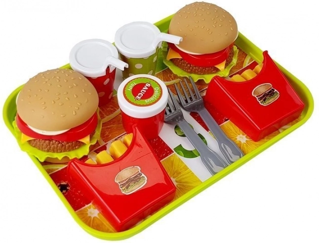 Kinderset fastfood – pizza, burgers, frietjes en accessoires, 24 stuks