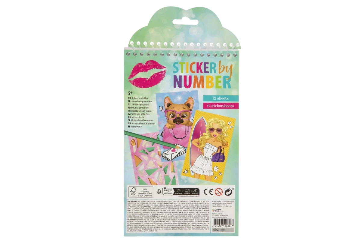 Stickers op nummer. Meisjesmotief. Het blok bevat 6 vellen met stickers en 12 vellen als plakoppervlak. Afmetingen 15×24,5×0,5 cm. Aanbevolen leeftijd 5+