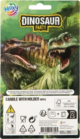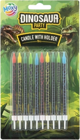Taartkaarsjes met dinosaurussen met houders, lengte ca. 10 cm, verpakking 10 stuks. Ideaal voor kinderfeestjes. Verpakkingsafmetingen 11×20×0,5 cm. Het product is geen speelgoed.