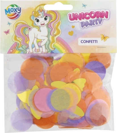 Papieren confetti met een eenhoornmotief, 20 g in zakje (13 × 14 cm). Ideale decoratie voor verjaardagen en kinderfeesten. Product is geen speelgoed.