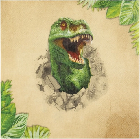 Papieren servetten met Dino-motief, 12 stuks. Formaat 33 × 33 cm, ideaal voor kinderfeestjes en themafeesten. Stijlvolle decoratie en eenvoudig opruimen.