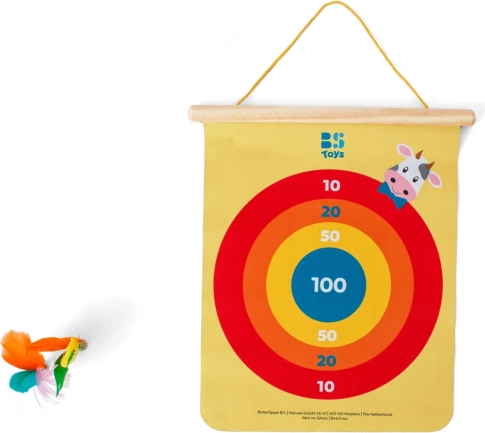 Dit klassieke dartspel in kindervorm biedt veilig en meeslepend competitieplezier thuis en in de kleuterklas. Het dubbelzijdige hangbord (40 × 31 cm) biedt twee speelvlakken voor meer spelvarianten en langer speelplezier. Kleurrijke gevederde pijlen met magnetische punt hechten gemakkelijk aan het bord en zijn geschikt voor jonge spelers.