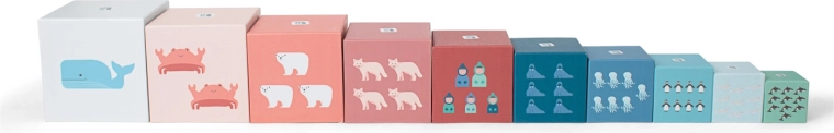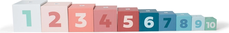 De kleurrijke set van tien stapelkubussen van duurzaam karton helpt kinderen cijfers leren, dieren herkennen en zowel fijne als grove motoriek trainen. De kubussen in verschillende formaten kunnen tot een piramide worden gestapeld of horizontaal naast elkaar worden gelegd voor leuk leren en het ontwikkelen van logisch denken.
