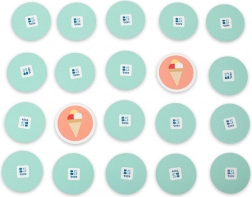 Lolly’s, ijsjes, snoepjes en donuts – de kleurrijke motieven spreken aan en helpen bij het snel herkennen van paren.