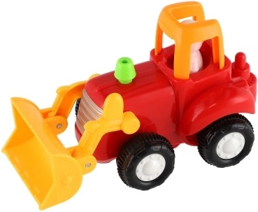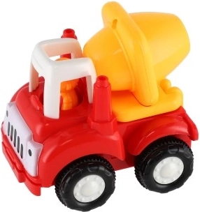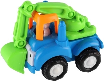 Kunststof bouwvoertuig met wrijvingsaandrijving: perfect speelgoed voor kleine bouwers. Afmetingen 10–12 cm, geschikt vanaf 3 jaar. Stimuleert de motoriek.