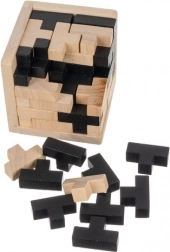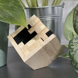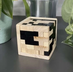 Deze stijlvolle houten puzzel in natuurlijke en zwarte uitvoering is ideaal voor mentale training en als designaccessoire op tafel. De set bevat zorgvuldig bewerkte, niet-giftige T-vormige stukjes die bij correct monteren een compacte, kleurgecombineerde kubus vormen. Dankzij de precieze afwerking is het bouwen vloeiend, prettig en verslavend.