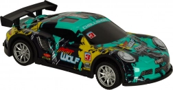 Stap in de wereld van actievol plezier met de compacte raceauto NIGHT WOLF. Dankzij de rubberen banden met uitstekende grip rijdt de auto soepel over harde en zachte ondergronden en krast hij de vloer niet. Lichteffecten zorgen voor extra realisme en de aantrekkelijke blauw‑groene uitvoering trekt direct de aandacht.