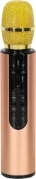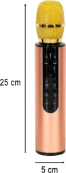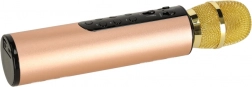 Zing overal en altijd met deze draadloze karaokemicrofoon in een gouden uitvoering. Voorzien van Bluetooth-verbinding, een ingebouwde luidspreker 2×5 W, sleuf voor geheugenkaart en AUX. Dankzij de 2000 mAh batterij geniet je van 5–6 uur plezier, eenvoudige bediening met knoppen en helder, stabiel geluid met reverb-effect.