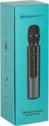 De stijlvolle karaokemicrofoon combineert een draagbare luidspreker en microfoon in één. Draadloze Bluetooth-technologie met een bereik tot 10 m zorgt voor een comfortabele verbinding met telefoon of tablet, terwijl de sleuf voor een geheugenkaart en de AUX-ingang de afspeelmogelijkheden uitbreiden. De bedieningsknoppen op de microfoon bieden snelle selectie van nummers, volumeregeling en het instellen van de echo.