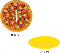 De plastic pizza met zes slices nodigt uit tot verdelen, serveren en delen. Perfect als basis voor een restaurantspel of een familiepicknick.
