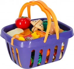 Kleurijke set van plastic speelgoedeten voor kinderen ondersteunt fijne motoriek, leren koken en creatief chefje spelen. De delen worden met klittenband aan elkaar bevestigd, zodat je het eten kunt “snijden” met een veilig plastic mes en weer in elkaar kunt zetten. Inclusief dienbladen, bordjes en kinderbestek, alles opgeborgen in een praktisch mandje met handgrepen voor gemakkelijk dragen en opbergen.