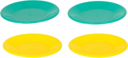 - 4× bord, bestek (3× mes, 1× vork, 1× lepel), 2× dienblad, eten (pizza, kip, paprika, vlees, tomaat, meloen, toasts, pompoen, ijsje, frietjes, champignon, eitje, broccoli), mandje met handgrepen