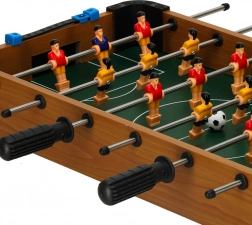 Het tafelvoetbal in een praktische maat past op elke tafel en is gemakkelijk mee te nemen. Dankzij de robuuste MDF-uitvoering en de duurzame metalen stangen met kunststof grepen geniet je van snelle en nauwkeurige schoten, of je nu speelt met kinderen, familie of vrienden. Ideaal voor thuistoernooien en het trainen van fair play.