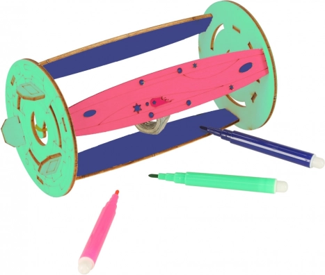 Met de meegeleverde accessoires kunnen kinderen verschillende verschijnselen onderzoeken: elasticiteit en potentiële energie (elastiekmodel), evenwicht en spanning in touwen (hangend “UFO”-model) en de effecten van zwaartekracht en beweging (katapult met metalen knikker). De stiften in 9 kleuren maken het mogelijk om elk project af te werken en te personaliseren.