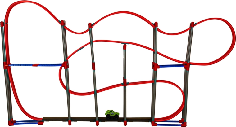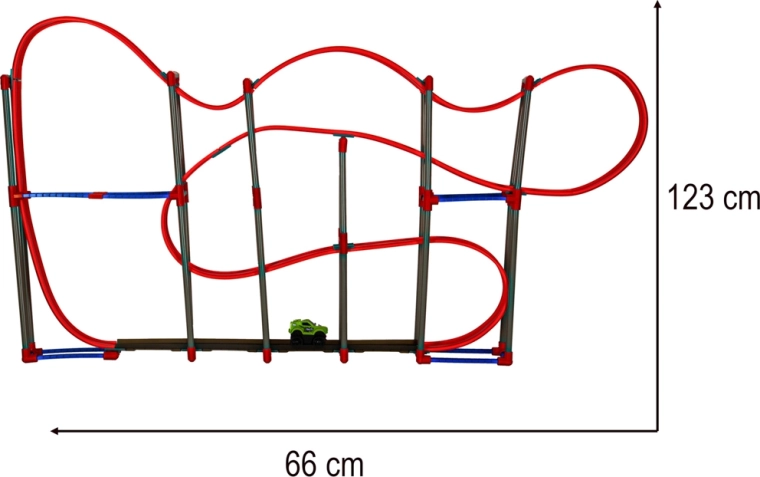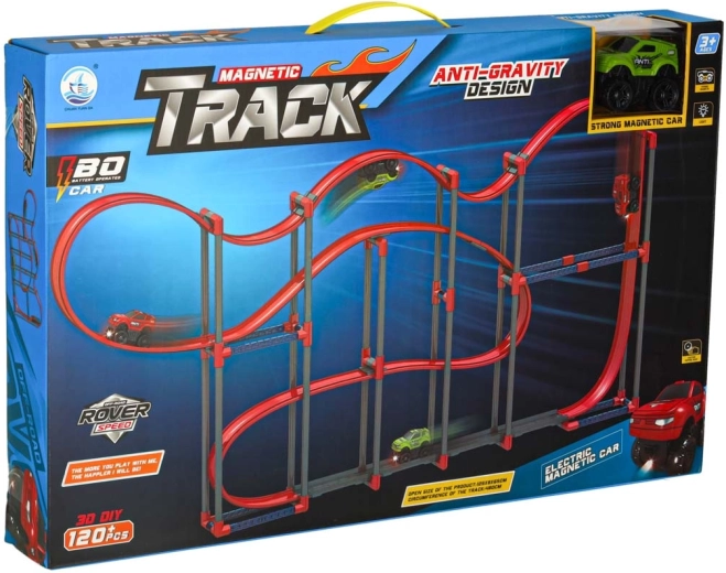 De antizwaartekracht racebaan is een interactieve speelgoed dat de fijne motoriek en observatievermogen van kinderen ontwikkelt. Met zijn 120 delen is het mogelijk een indrukwekkende baan te bouwen van 123 x 36 cm, waar het autootje scherpe bochten, steile beklimmingen en zelfs omgekeerde secties kan nemen.