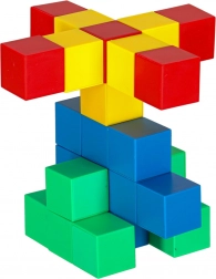 Elke steen heeft een vierkante vorm, waardoor het kind vrij kan creëren zowel eenvoudige als complexere bouwsels. De stenen zijn in levendige kleuren: groen, geel, rood en blauw, die de aandacht trekken en aanmoedigen tot het maken van kleurrijke ontwerpen.